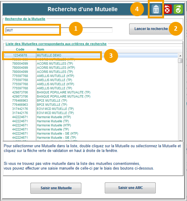 1. Saisissez au moins les trois premières lettres de la mutuelle à supprimer.