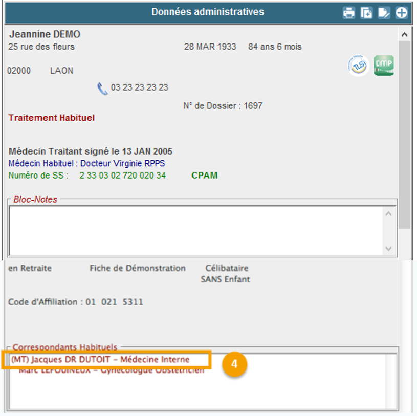 Une fois ce correspondant habituel associé à votre patient, maintenez la touche ALT appuyée et cliquez sur le médecin traitant du patient depuis la liste des Correspondants Habituels.