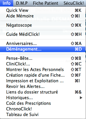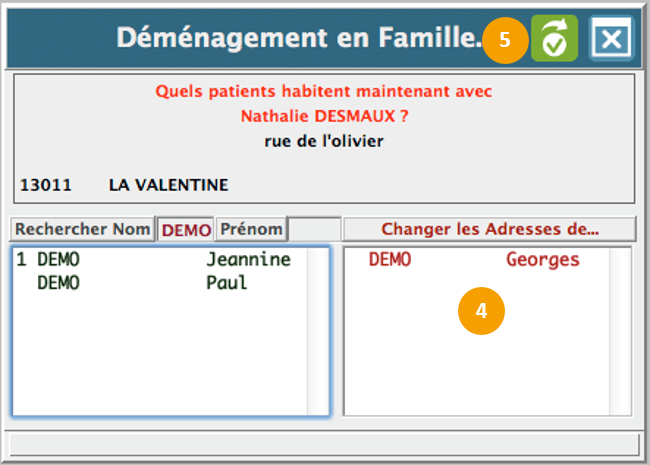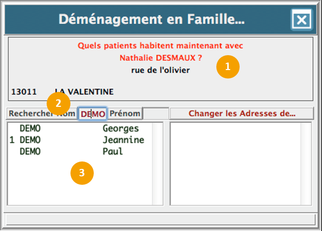 La fonction déménagement, vous permettra de mettre à jour l'adresse de tous les patients d'une même famille sans avoir à modifier chaque fiche administrative.