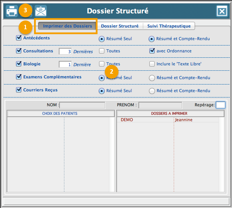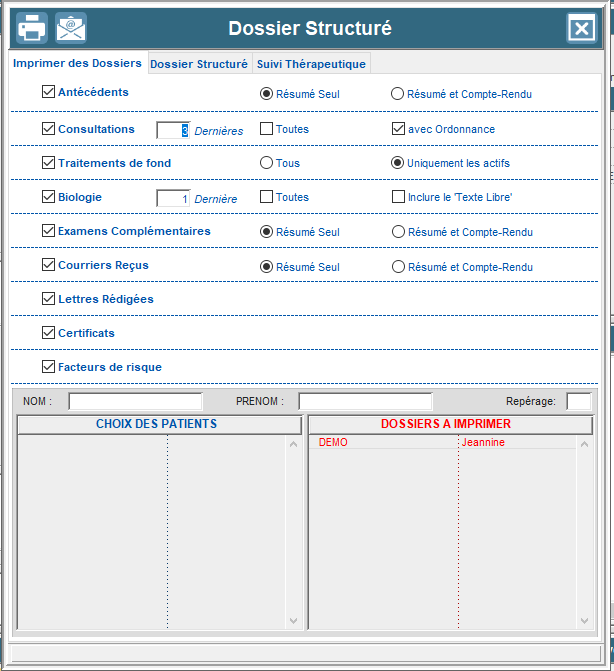 Vous avez désormais la possibilité d'imprimer dans le dossier structuré de votre patient :