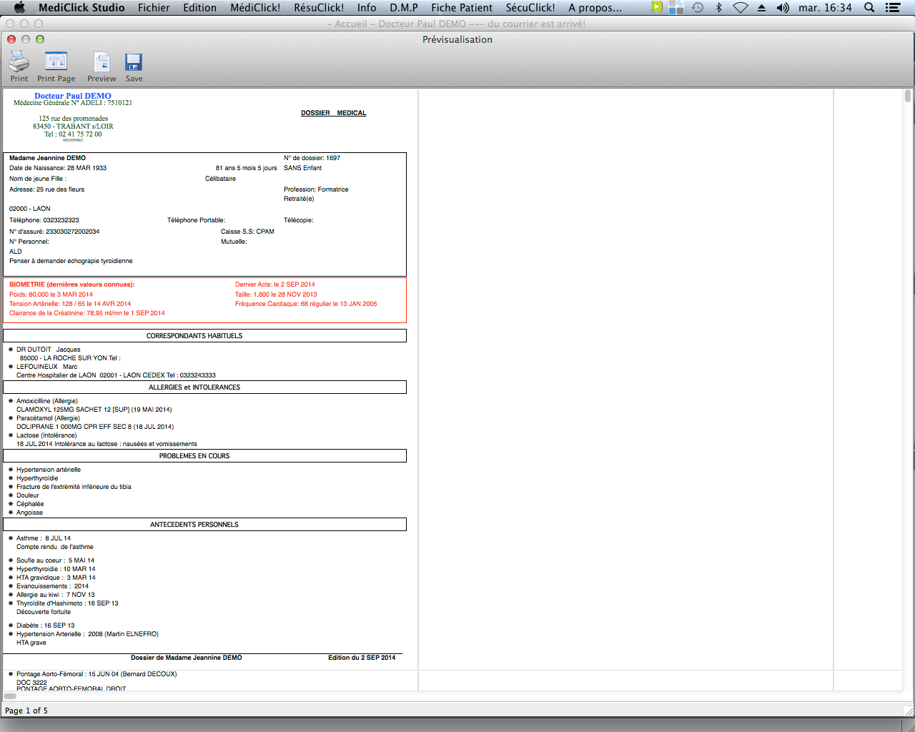 Cliquez sur Print pour éditer le dossier patient.