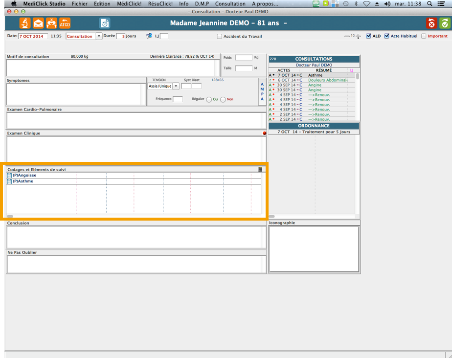 Automatiquement, dans les codages et éléments de suivi, vous retrouvez les problème en cours du patient :