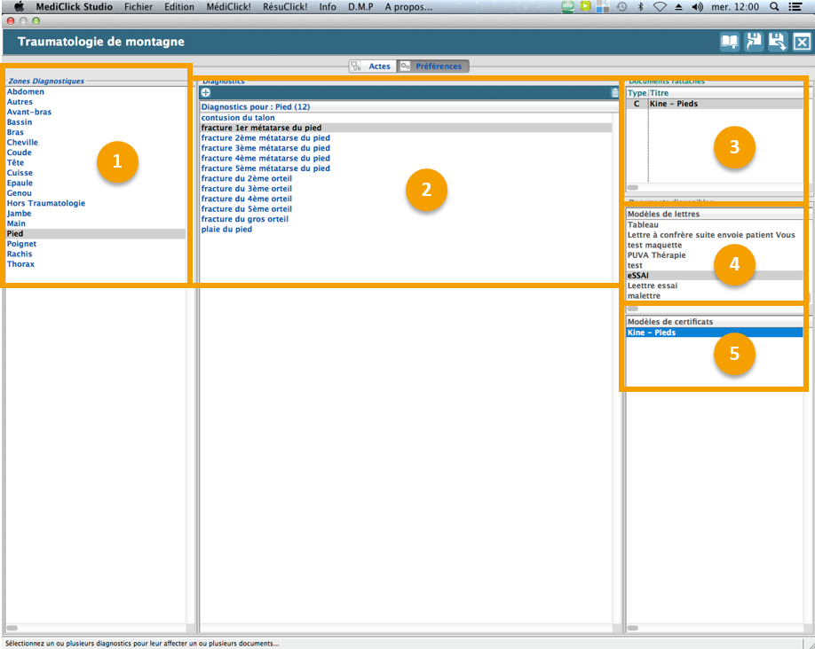Définir une liste de diagnostic pour une zone de traumatisme.