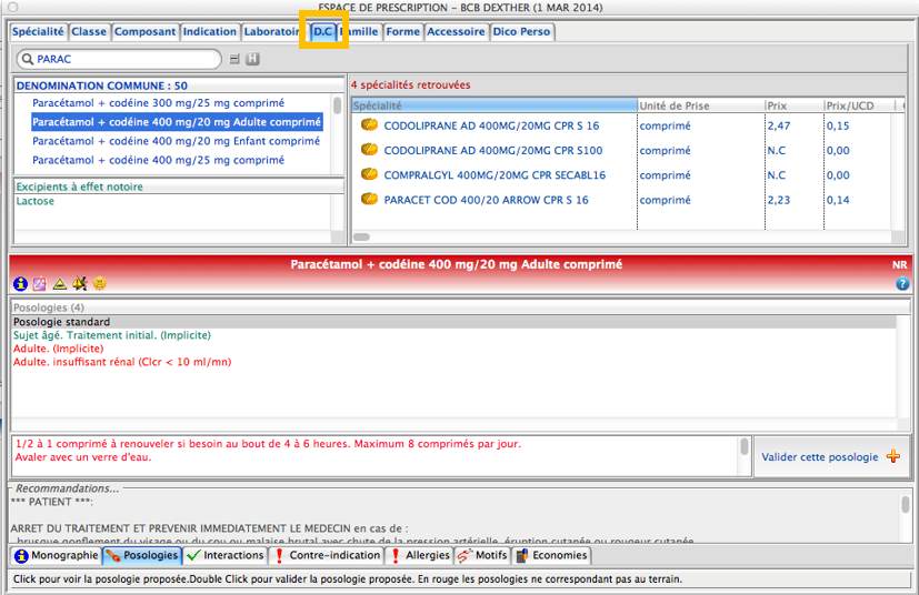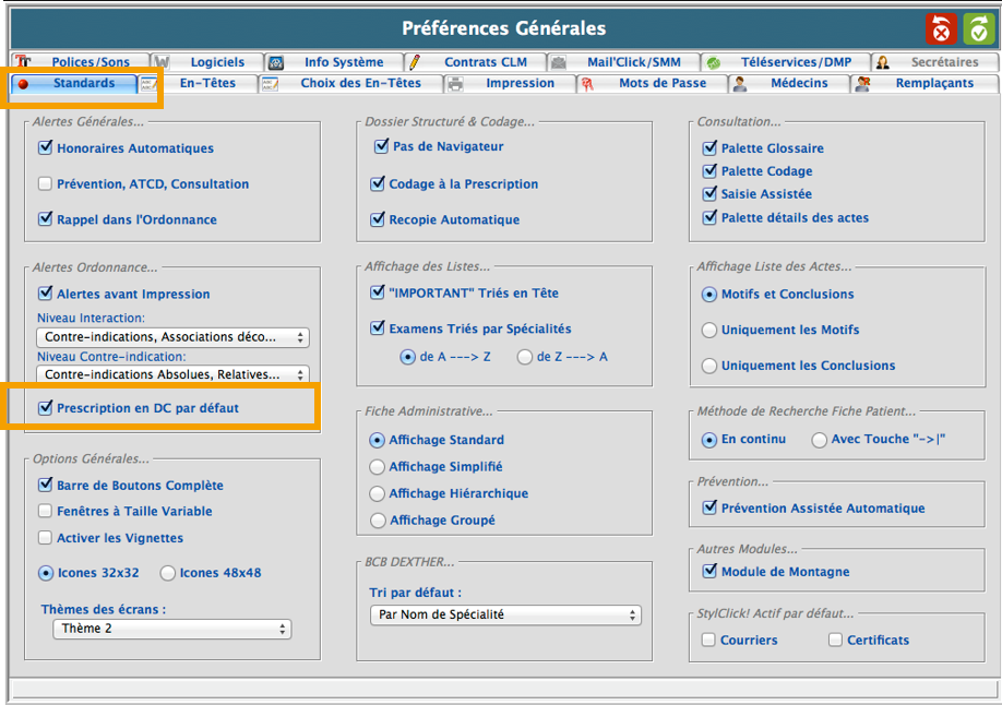 Et en paramétrant l’affichage en DC de la prescription depuis les Préférences Générales de MédiClick.