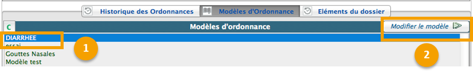 le nom, le contenu, la durée et les attributs (commun, personnel) du modèle d’ordonnance peuvent être modifiés.