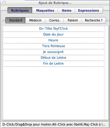 5. Depuis le menu Styl'ClickRubriques, ajoutez des éléments automatiques (les signets) dans votre courrier en double-cliquant dessus ou par glisser-déposer. (Coordonnées, date automatique, etc.)