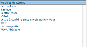 4. Depuis cette barre de navigation, alimentez le contenu de votre courrier en commençant par sélectionner d’un clic la catégorie de l’élément à ajouter (Ici : Un acte de consultation), puis sélectionnez par un double-clic l'élément à insérer dans le courrier :