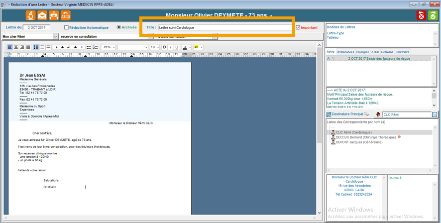 Lors de la rédaction d'un courrier, vous avez la possibilité de saisir un titre pour celui-ci.