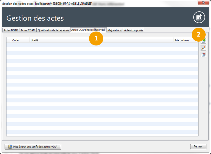 1. Cliquez sur l'onglet Actes CCAM hors référentiel,