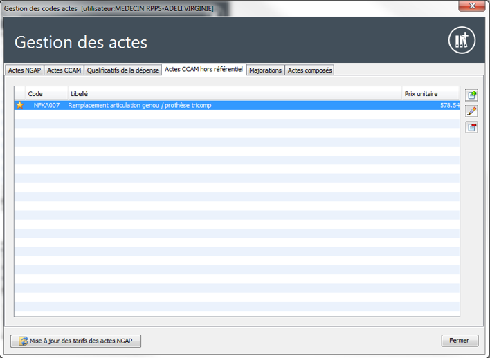 L'acte CCAM hors référentiel est créé. Vous le retrouvez dans la liste des actes CCAM favoris de la feuille de soins.