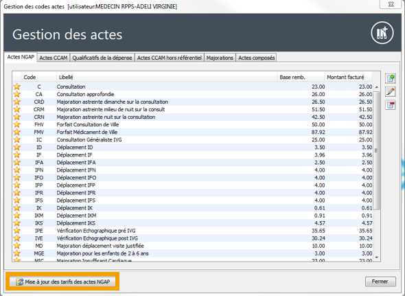 Vous avez la possibilité de mettre à jour automatiquement les tarifs des actes NGAP, lorsque ceux-ci sont réévalués.