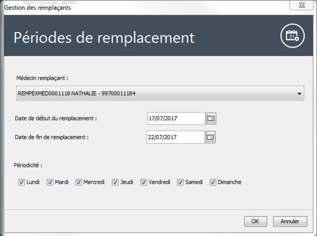 Une fois votre remplaçant créé, vous avez la possibilité de déclarer des sessions de remplacement.