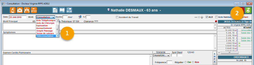 1. Sélectionnez le type Téléconsultation dans le menu déroulant,