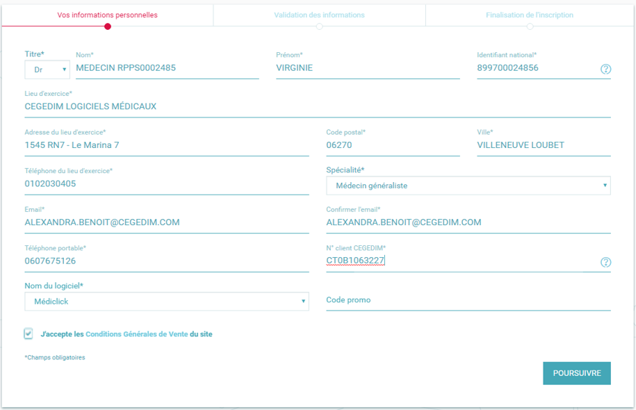 Un récapitulatif des informations que vous avez saisies apparaît, cliquez sur Valider l'inscription.