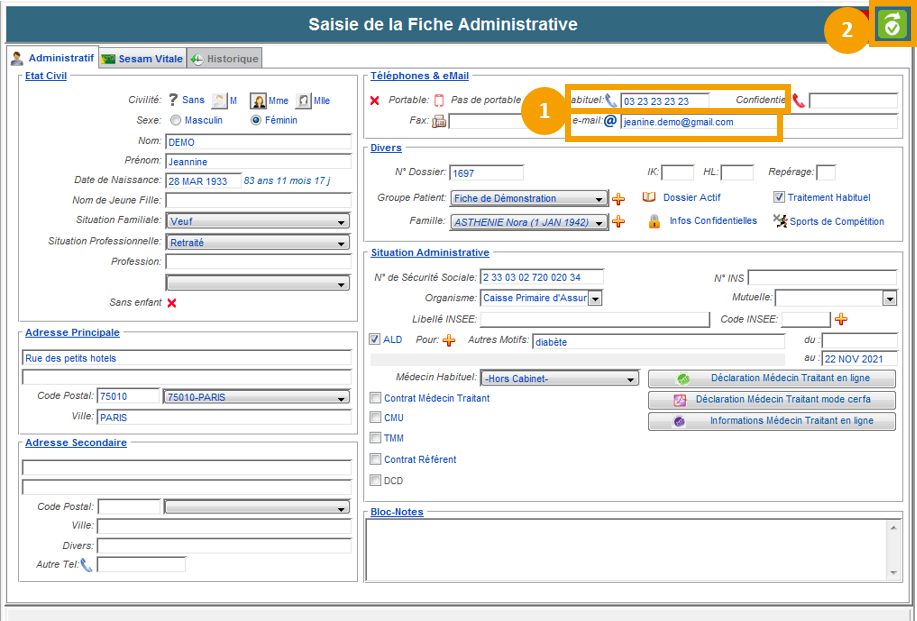 Renseigner le numéro de téléphone mobile et le mail du patient