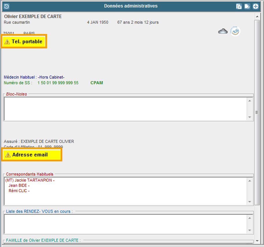Dans le but d'améliorer la qualité et l'efficacité du service Docavenue, une alerte vous proposera de renseigner le numéro de téléphone portable ainsi que l'adresse mail de votre patient au niveau de sa fiche administrative.