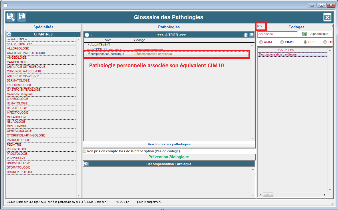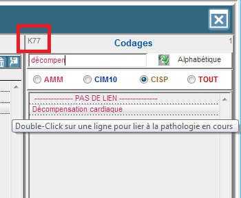 • Double-cliquez sur ce terme finaliser le codage de votre pathologie.
