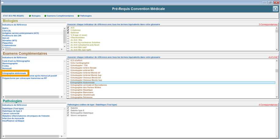 Depuis la rubrique Examens Complémentaires, sélectionnez l’indicateur de référence.