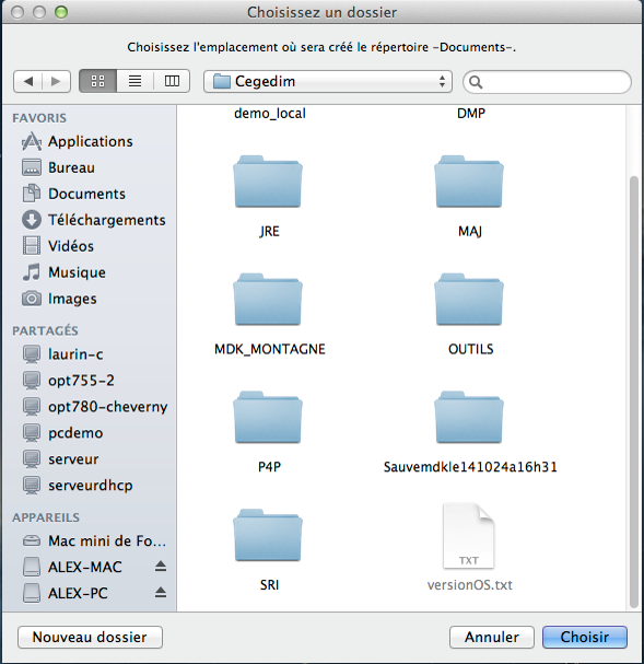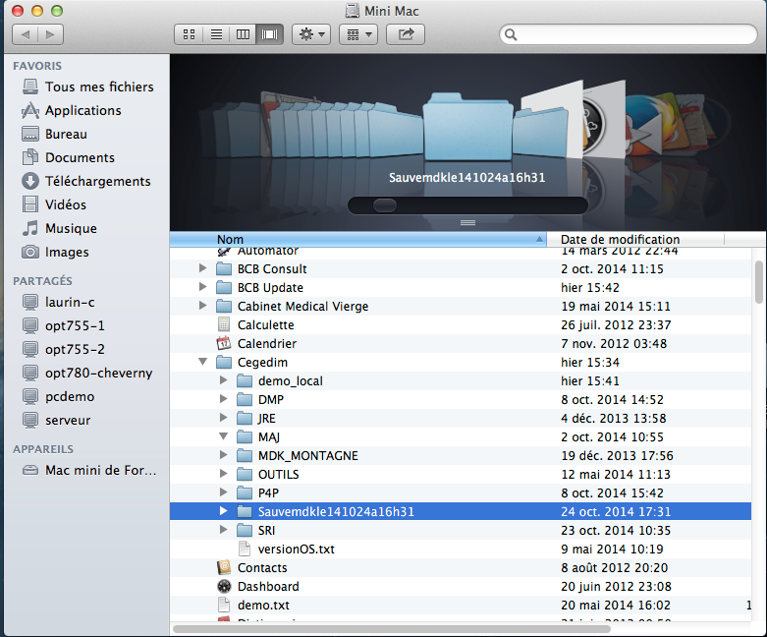 2. Copiez votre dossier Sauvemdkle141017a11h08 dans Mini Mac/ Cegedim sur Mac comme dans l'exemple ci-dessous (C:/Cegedim sur PC)