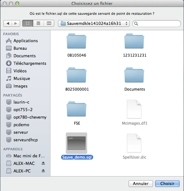 6. Indiquez le chemin de la sauvegarde et sélectionnez le fichier, ici Sauve_demo.sql :