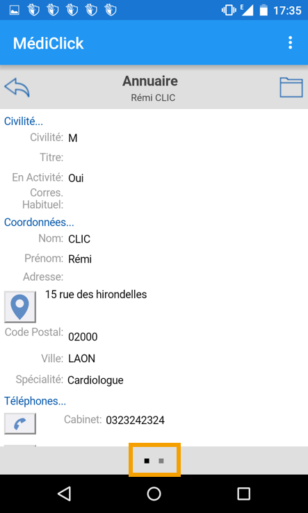 Pour visualiser la totalité des informations de la fiche administrative du correspondant cliquez sur les points pour passer d'une page à une autre :