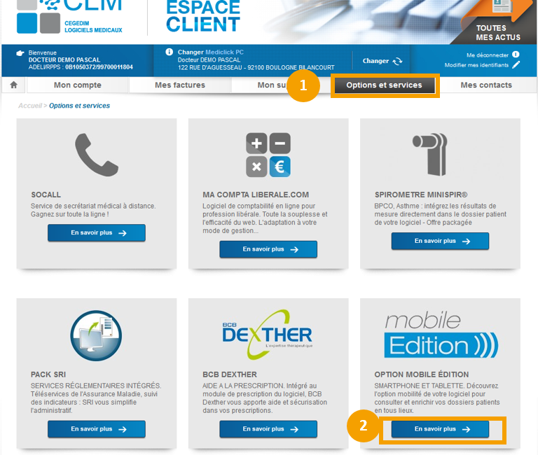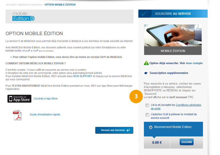 Souscrivez en ligne à l'option MédiClick Mobile Édition sinon pour plus d'informations, contactez-nous au 01 49 09 31 30 (choix 1).