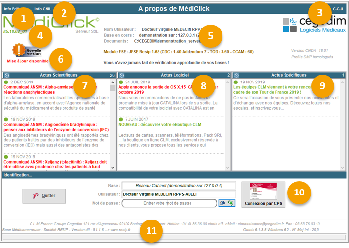 1. Accédez par ce bouton aux informations concernant l'éditeur de MédiClick.