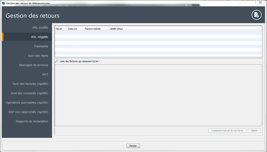 De là, vous pourrez traiter manuellement les feuilles de soins rejetées.