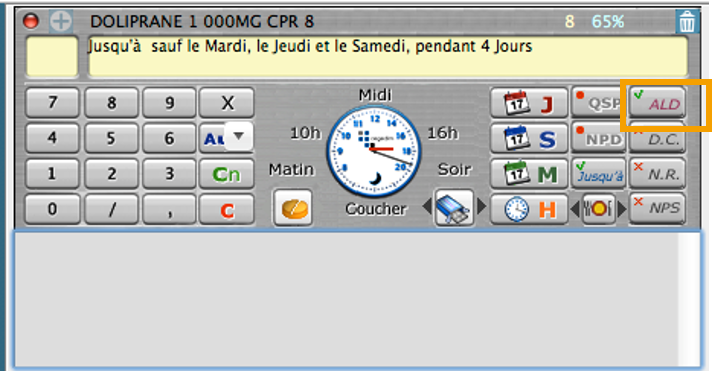 Cliquez sur le bouton ALD dans la calculette de prescription (ici, Intuiclick!) :