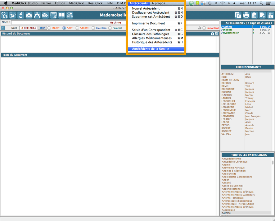 Une fonction a été ajoutée à MédiClick pour faciliter la gestion des antécédents familiaux.