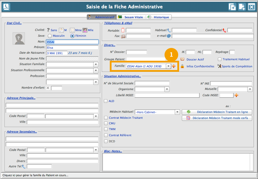 Quittez la fenêtre de gestion des antécédents familiaux en cliquant sur , vous retombez alors sur l'écran suivant :