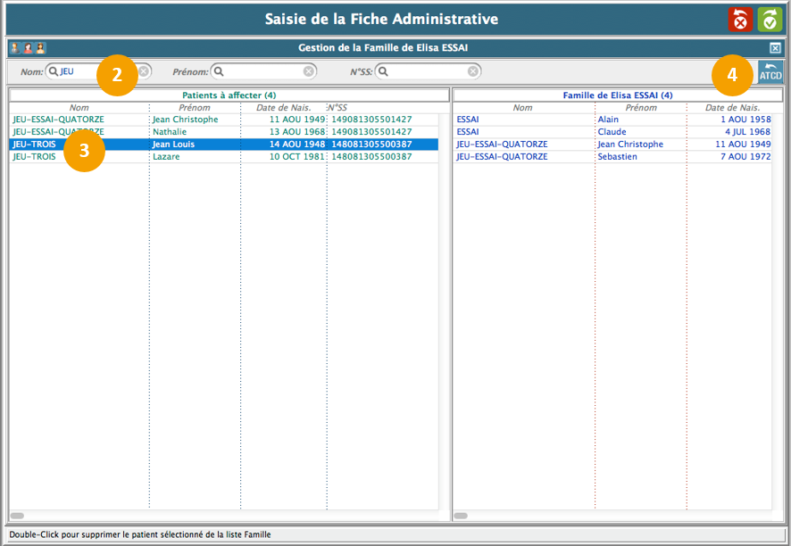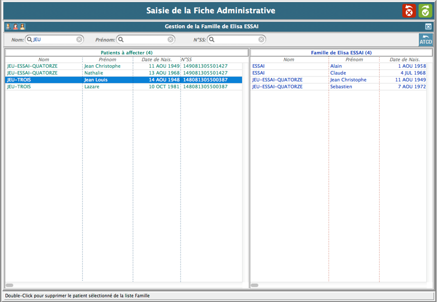 3. Double-cliquez sur le patient pour l'ajouter dans la colonne de droite (famille).