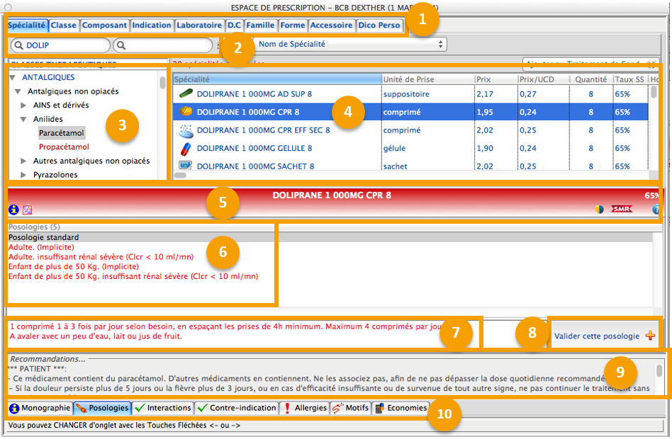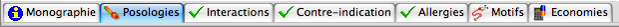 Interactions : Les interactions liées aux médicaments sont signalés dans l’onglet :