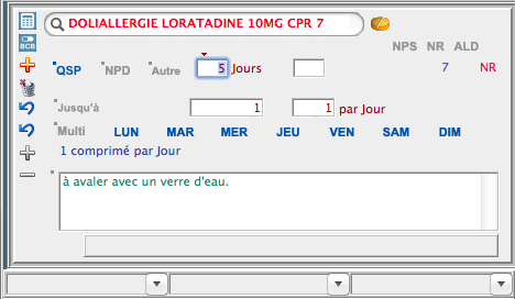 Cette palette s'ouvre chaque fois qu’une ligne d'ordonnance est ajoutée. Elle permet :