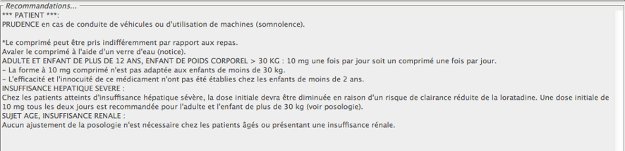 Contre-indications : Les contre-indications sont signalées dans l’onglet :