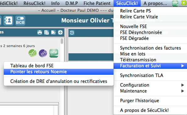 Afin de mettre à jour la comptabilité de MédiClick, allez dans le menu SécuClickFacturation et SuiviPointer les retours Noemie