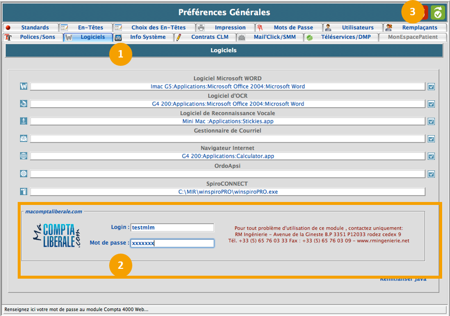 Dans un premier temps, pour effectuer L'export des honoraires de MédiClick vers le logiciel MaComptaLiberale.com, il faut renseigner dans les préférences générales de MédiClick, votre Login et Mot de passe de MaComptaLiberale :