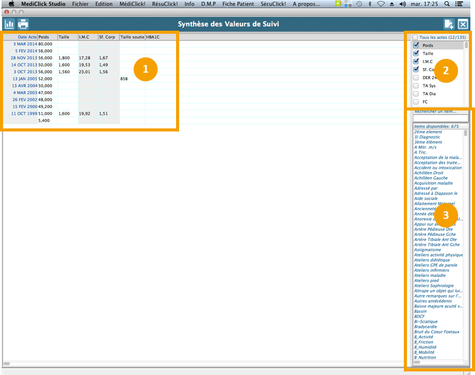 Double-cliquez sur les items que vous souhaitez rajouter dans le tableau de suivi du patient.