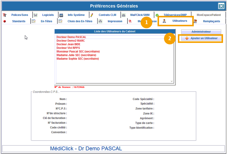 Depuis les préférences générales de MédiClick, un onglet Utilisateurs. permet de voir la liste des utilisateurs et même d'en rajouter.