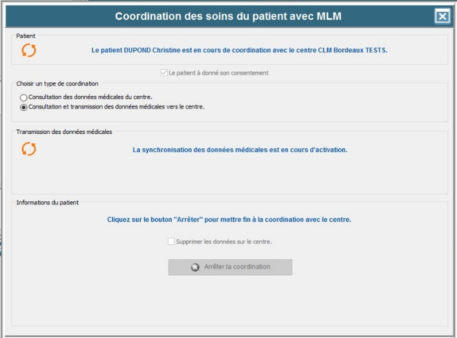 • La fenêtre Coordination des soins du patient avec MLM s'ouvre :