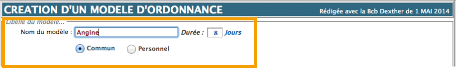 Un modèle d’ordonnance est constitué d’une prescription définie pour une pathologie donnée. Tous les modèles sont répertoriés dans l’onglet .