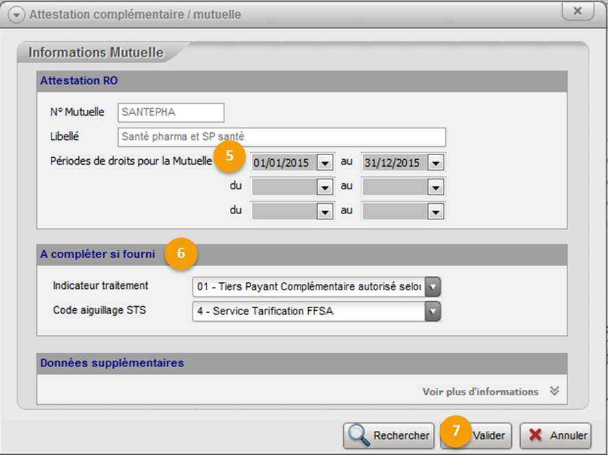Lors de la facturation, pour pratiquer le tiers-payant sur la part complémentaire, vous devez saisir la mutuelle du patient.