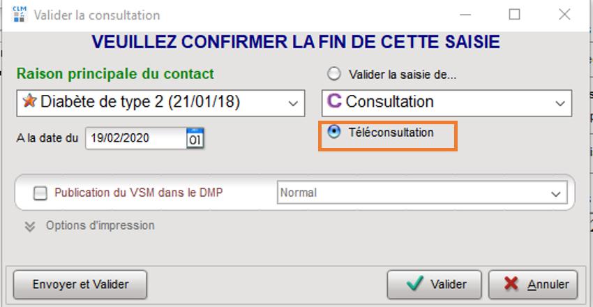 A la validation de la consultation, cochez Téléconsultation, puis validez.
