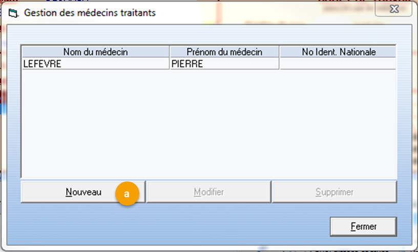 Si le nom du médecin que vous souhaitez renseigner n'existe pas dans la liste, cliquez sur le bouton