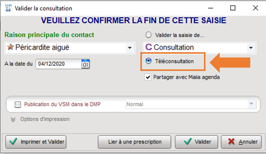 Cochez Téléconsultation. Et cliquez sur Enregistrer et Valider.