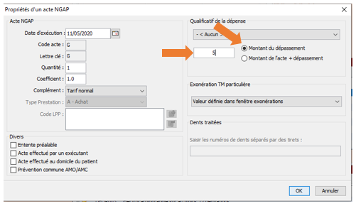 Ce montant Total Secu différencie bien le montant de l’acte de celui du montant de l’acte avec dépassement, si et seulement si votre dépassement a été saisi tel quel :