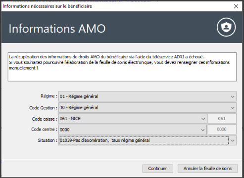 La FSE en mode Sesam sans Vitale s'ouvre.