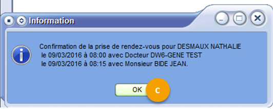 3. Confirme par OK, la prise des rendez-vous.