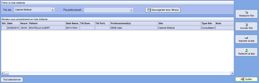 Depuis la fenêtre Liste d'attente, vous pouvez :