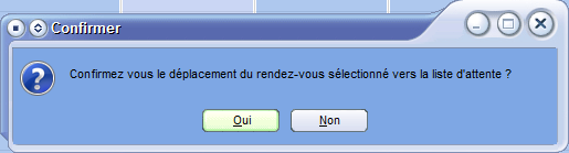 Confirmez la mise en attente du rendez-vous en cliquant sur Oui.
